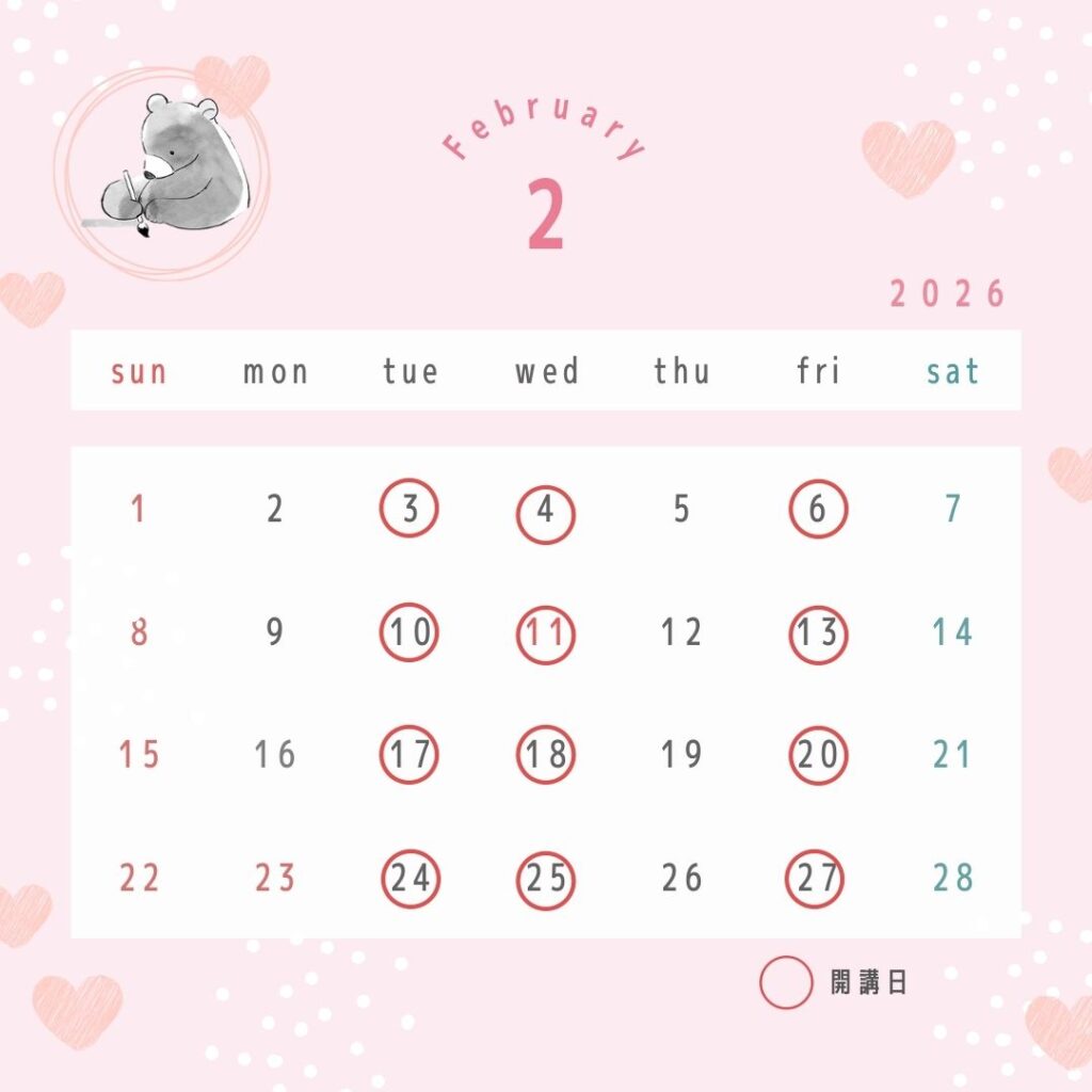 2026年度の1月から3月までのカレンダーを更新しましたのでお知らせします。